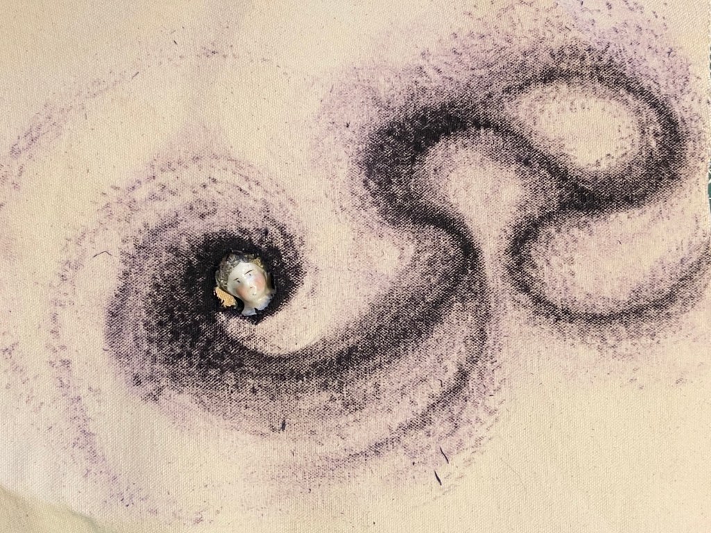 Within the whole I placed a vintage dolls head.