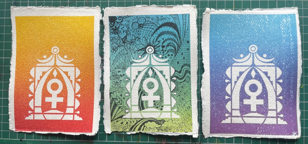 Combining a further stencil work onto to some fine mesh resulted in a clearer image of the ‘shrine’ image.