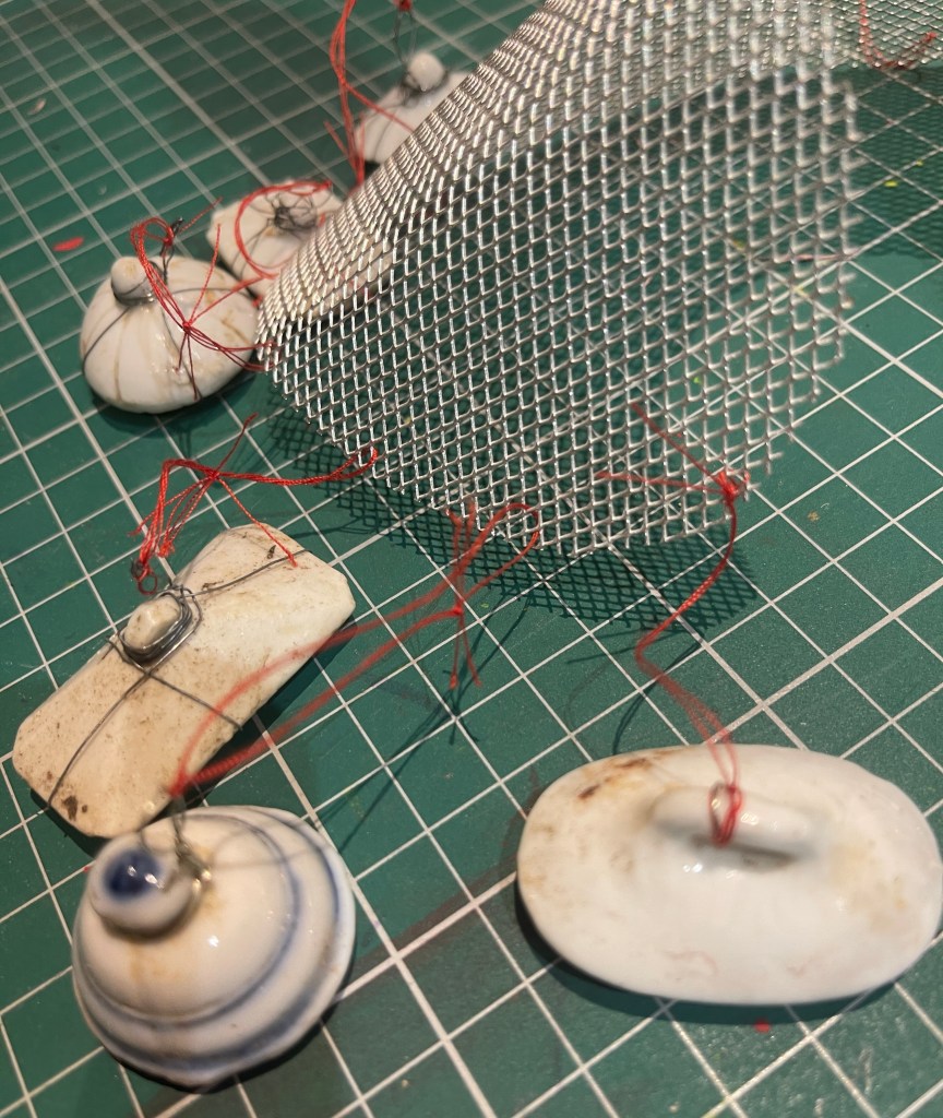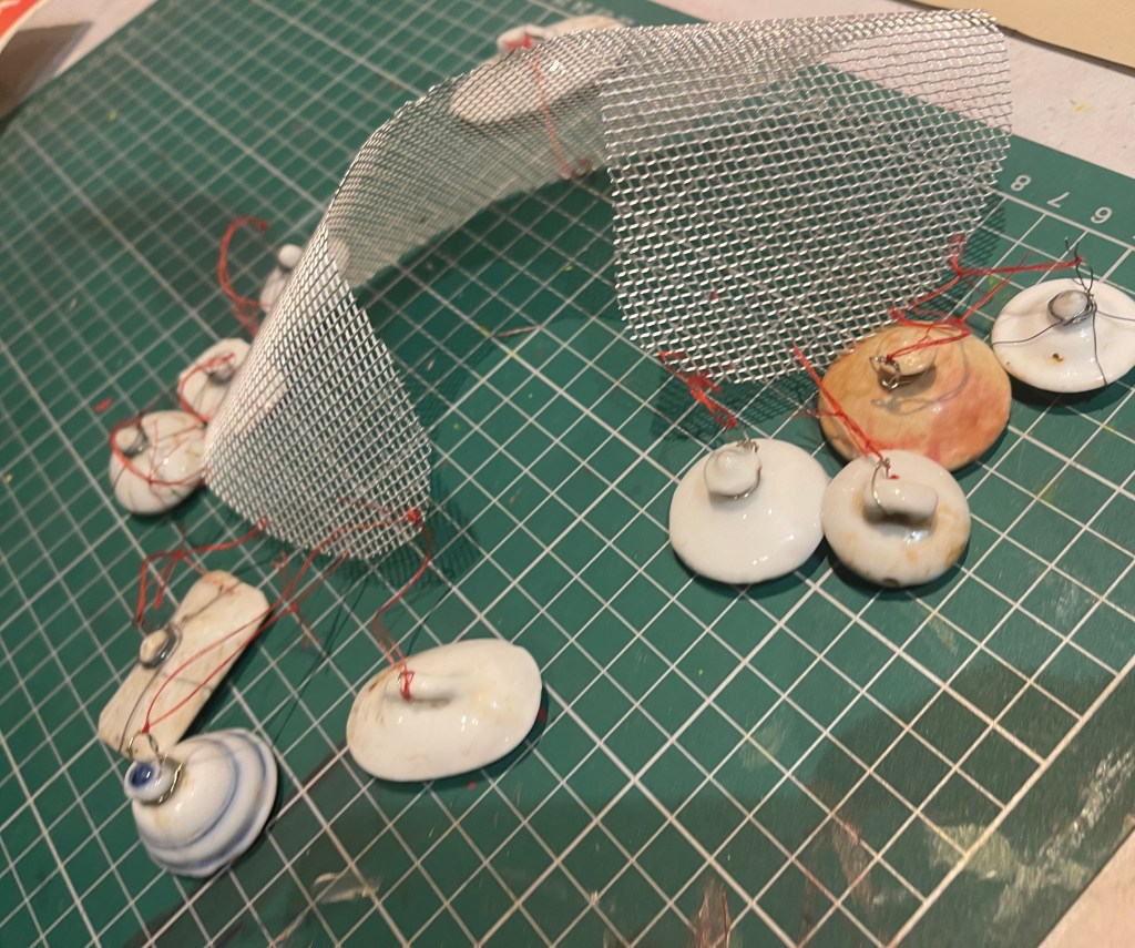 I tied the pieces to the collar shape using wire and string…
