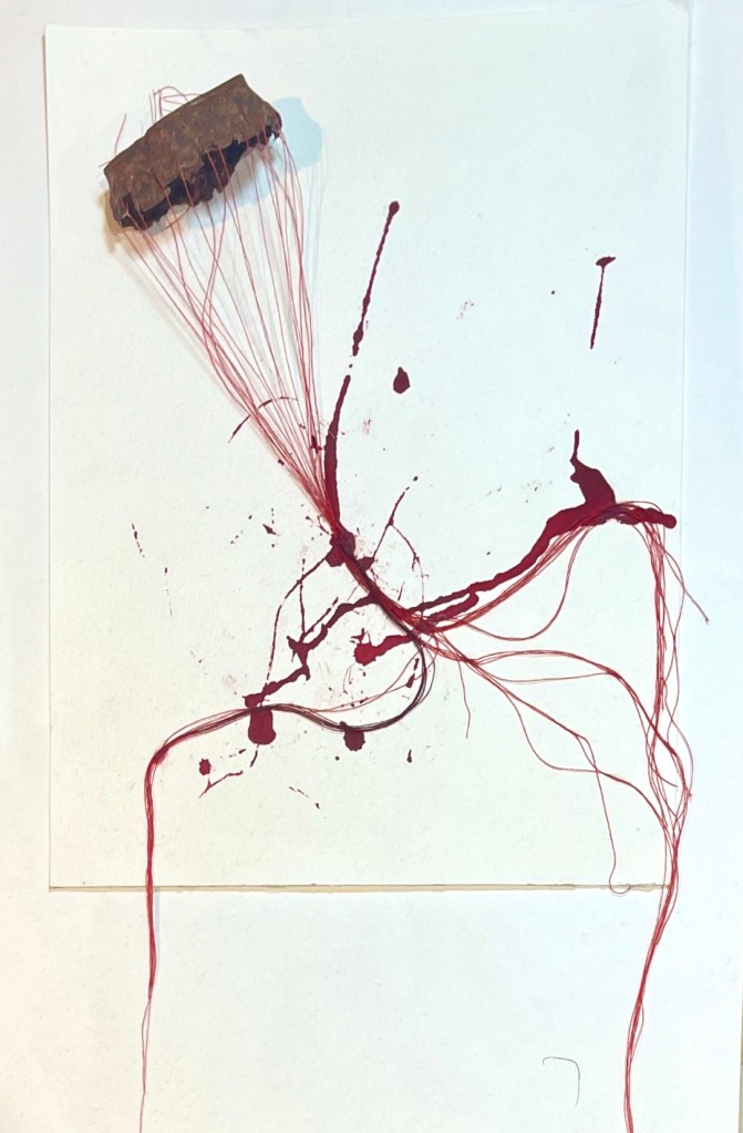 ‘I make things spontaneously – materiality orientated process – difficult to always plan and formulate in advance – ideas come from the material them selves and possibilities I see in its manipulation. The process of creation comes from ideas inspired by the material and its possibilities – current themes are ever present – mental health , women , fragility time, trace.’ ( Lucas)