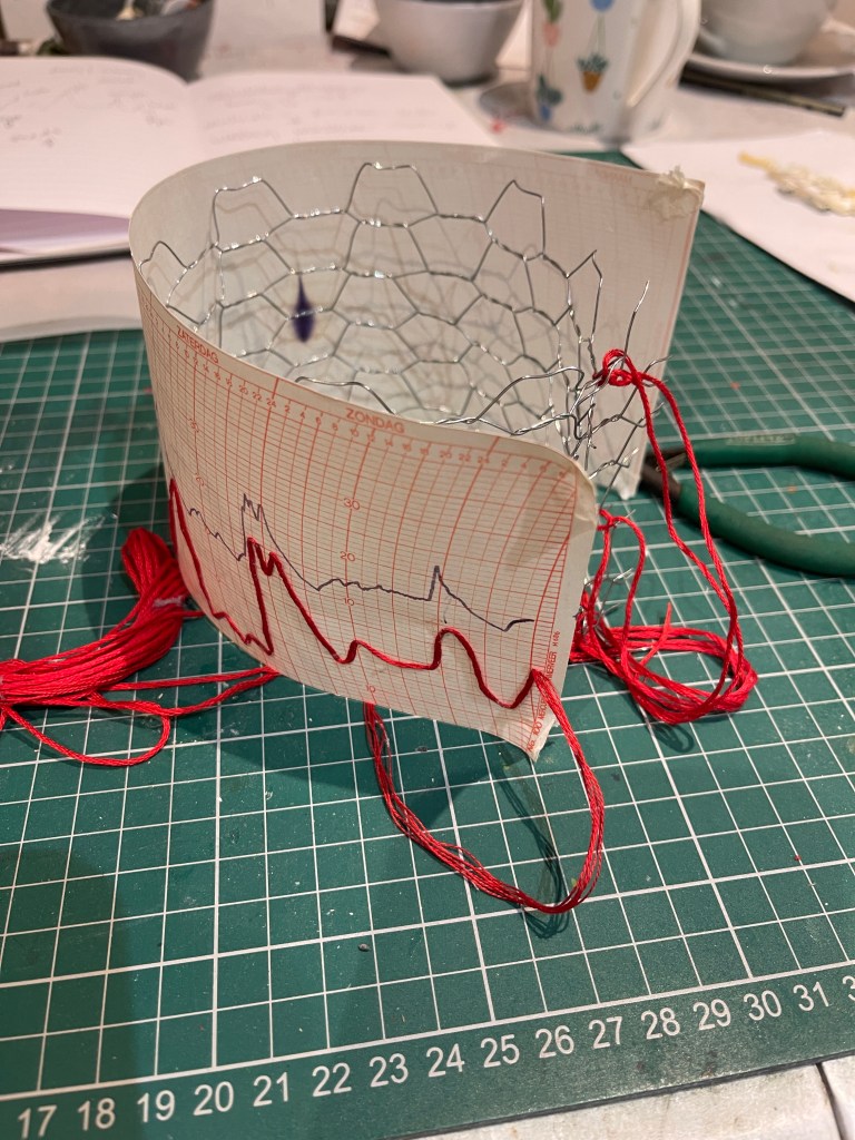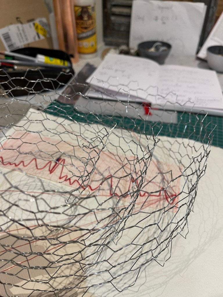 Emulating its original form on the barrel of the barograph I used wire mesh to construct a similar sized shape