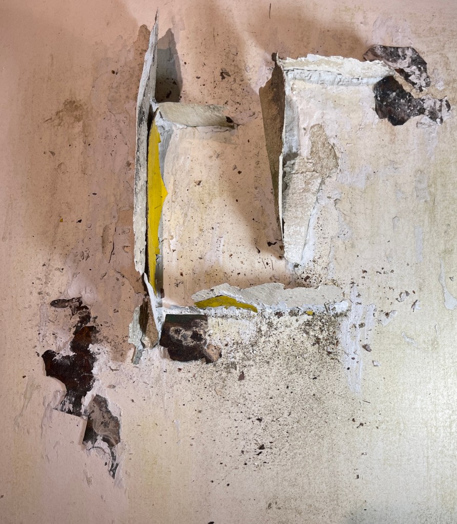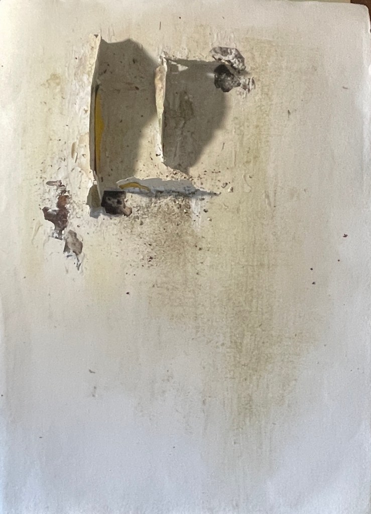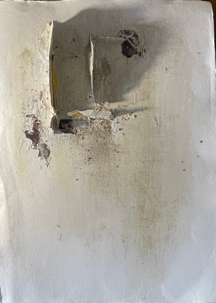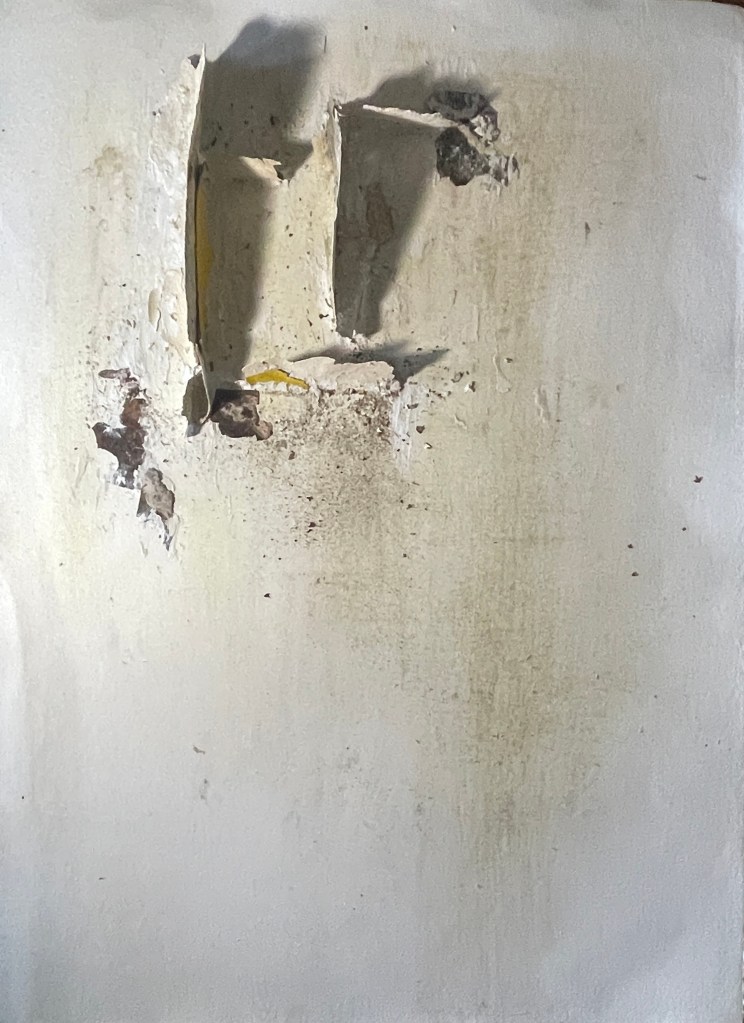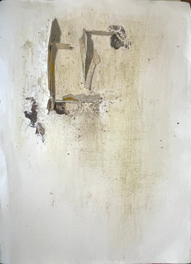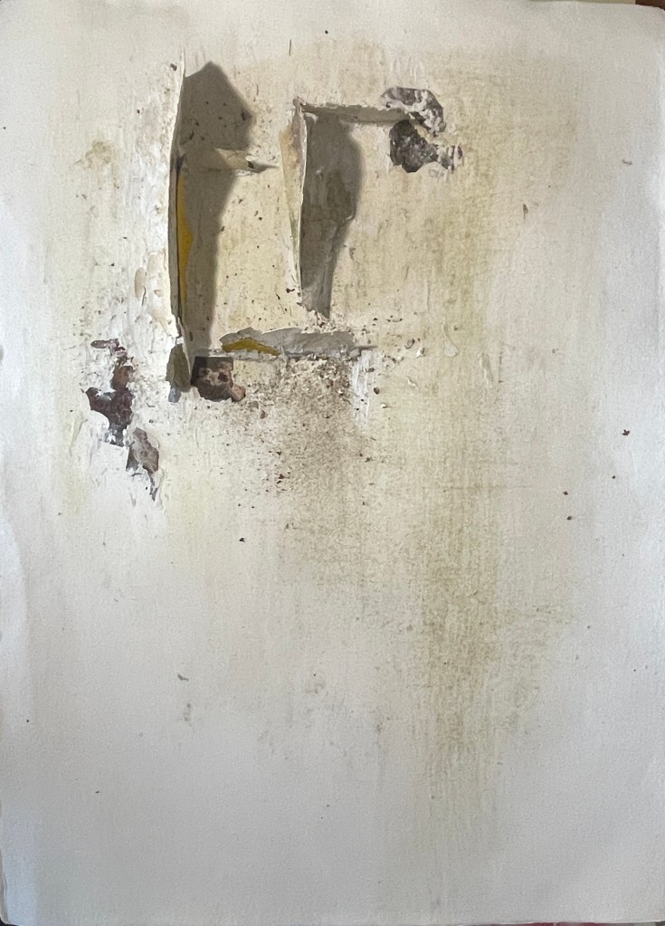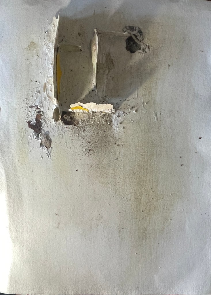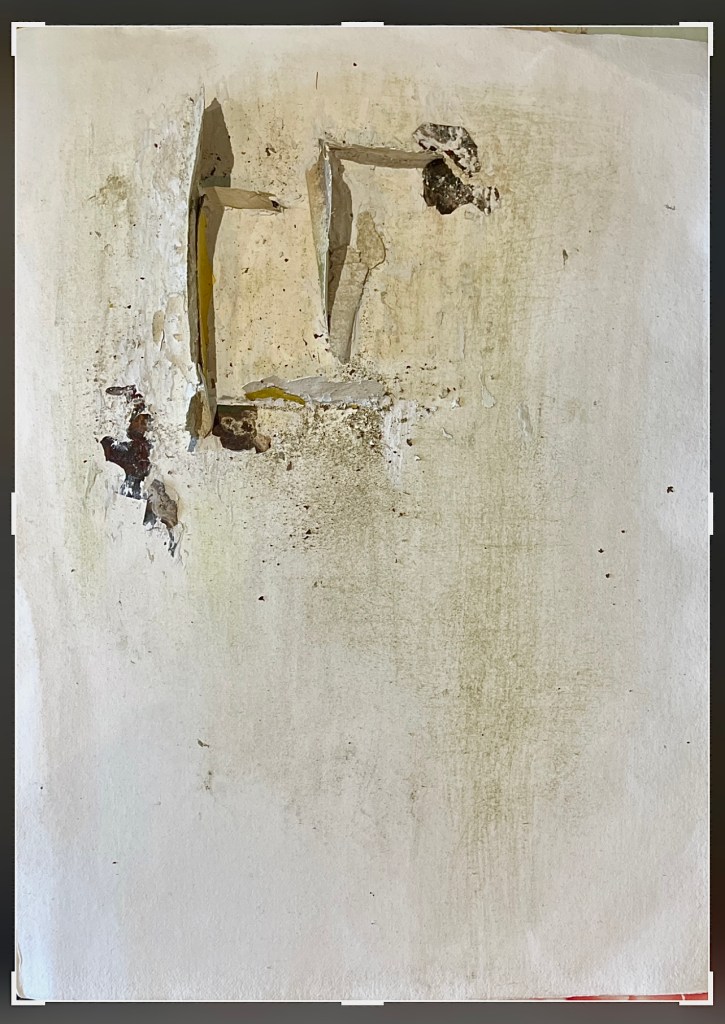 This new work has come from directly from he material narrative of the found material, obtained from crumbling properties and structures I have explored The paint, plaster and rubble holds its own narrative of the past, dilapidation and debris. Working with the brittle material gave agency to the narrative and allowed the found matter to be heard.