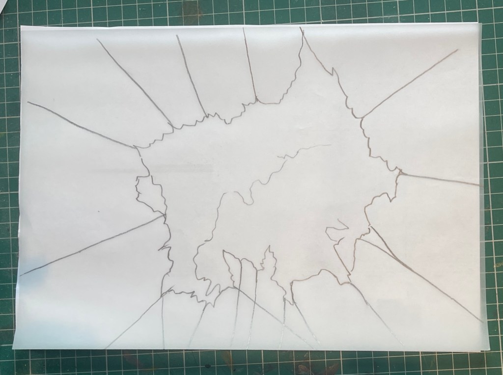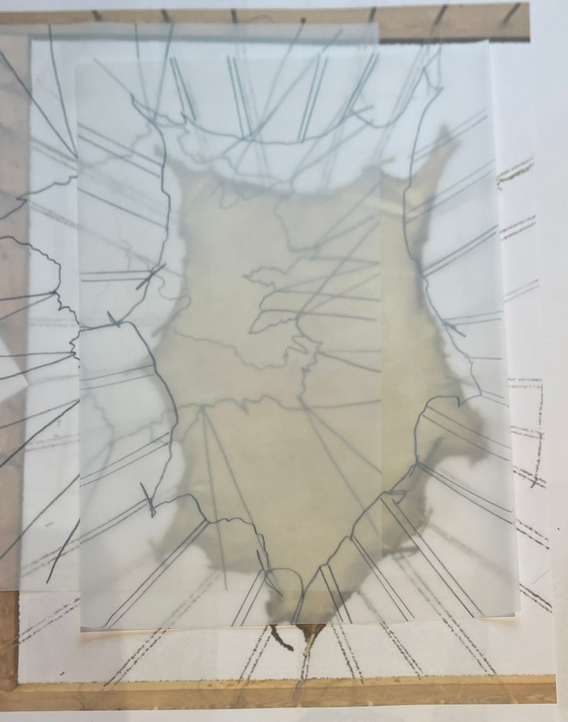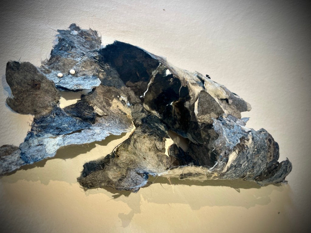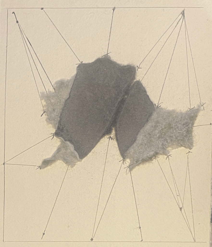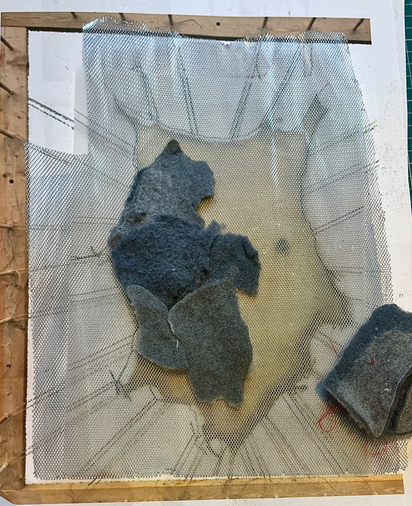 Sketching up the pelt formation on paper with raw felted detritus. Really like this image and hooping to emulate this further …