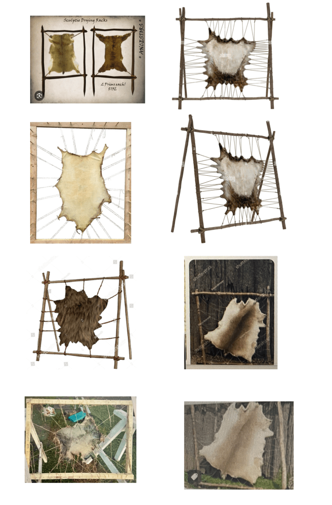 ( pelts – hung up dried out usage changed , replaced from animal skin to all manner of items/objects – mutable – )