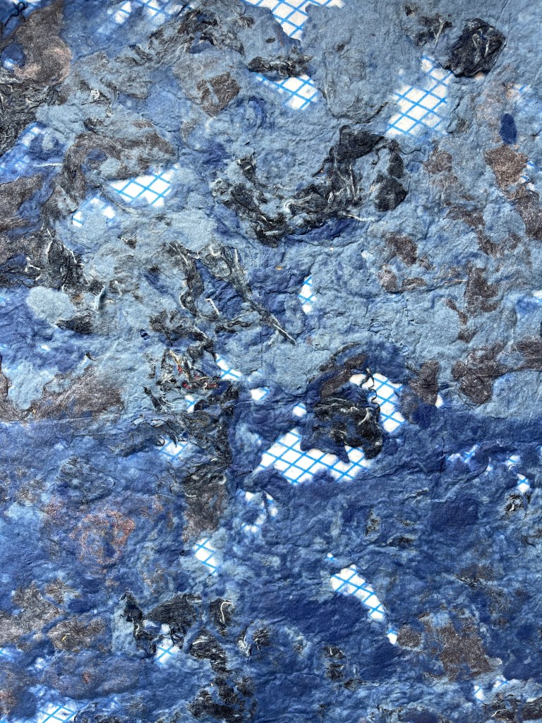 Unexpected outcome to see the wet felting process had in – printed dye marks into the paper it sat to dry on :