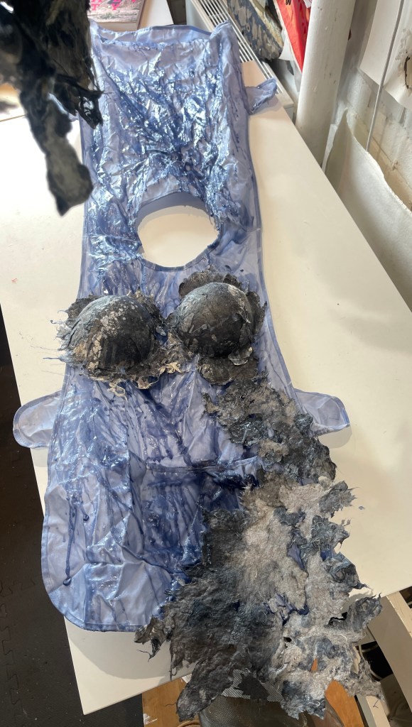 I started the process with an excess volume of starch for the aprons, this was to ensure a extreme stiffness and solidity when dried.