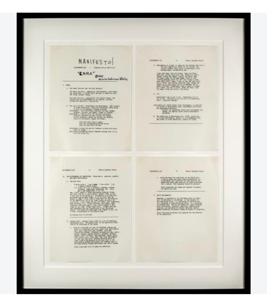 “Manifesto for Maintenance Art” – Ukeles – 1969 – Published in Artforum 1971.
