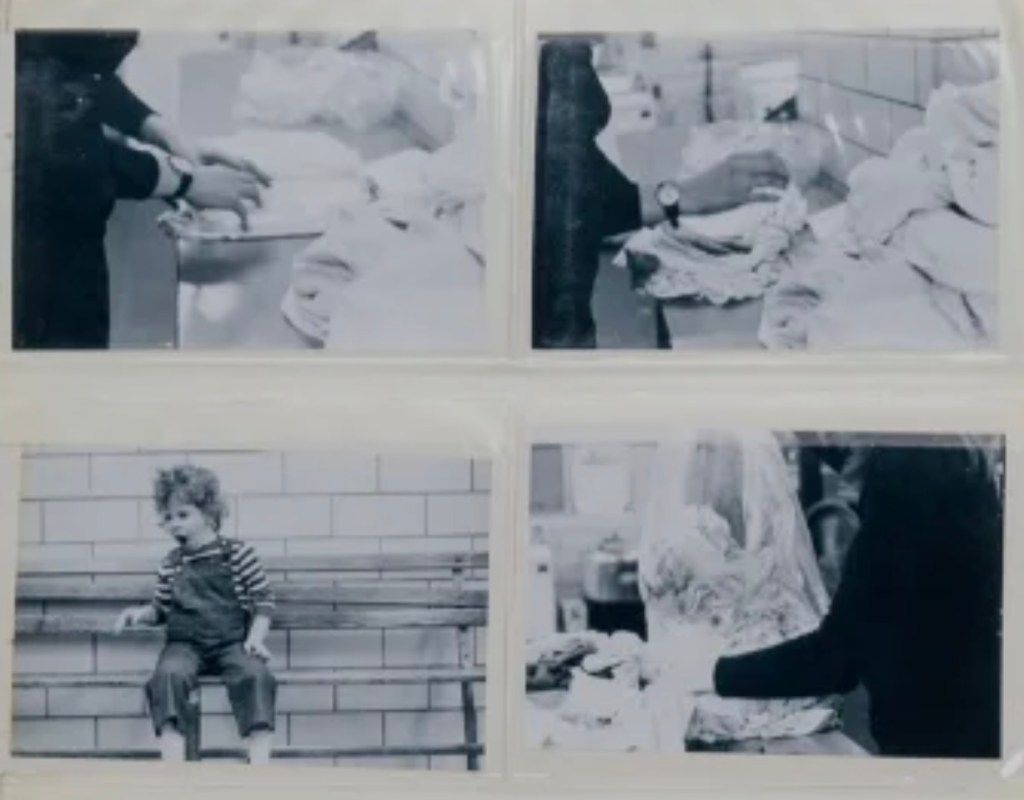 Mierle Laderman Ukeles, Maintenance Art Tasks 1973 (detail), album with gelatin silver prints, chain, and rags, 13 × 12 1/2 × 1 3/4″. Photographs by Joshua Siderowitz, 1973.