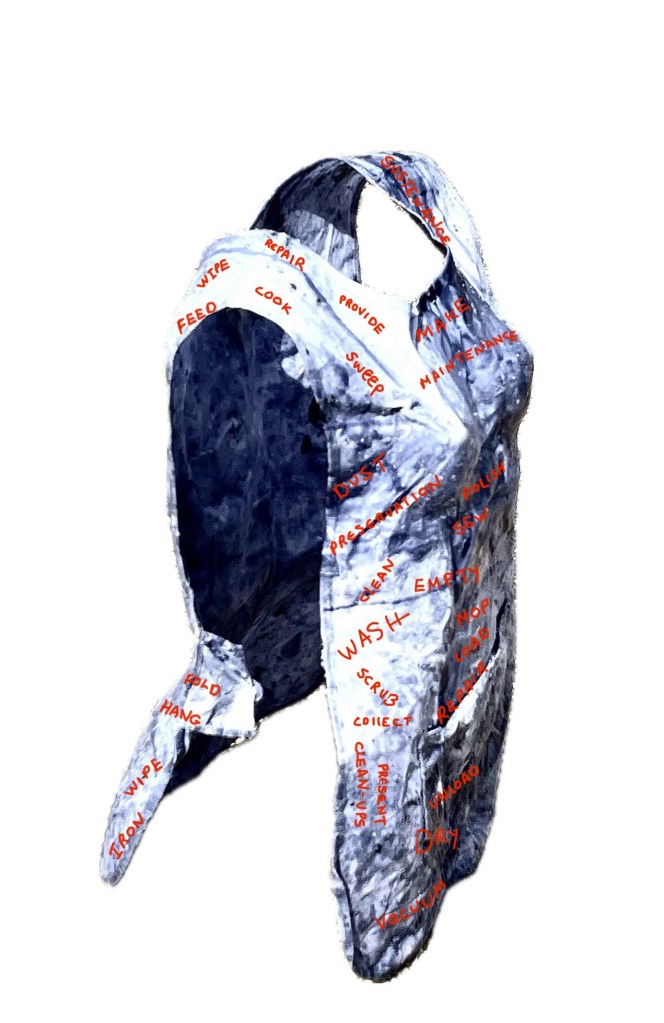 Continuing to work on the motif of the apron as a symbol ( symbolic ) of the female domestic worker I looked to other mediums to capture/ embalm/give agency to this uniform steeped in historic cultural significance and recognition.
