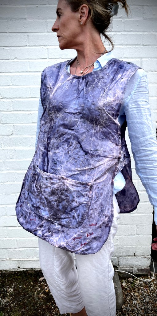 This process was experimental and process based my concerns centring around the Apron as an overall uniform that wiped away the person ( female behind it). A restricted uniform with the far reaching connotations of restriction to cover restriction of place, movement and cultural limitations on the female.
