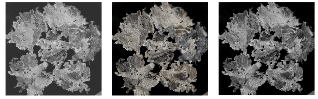 I photographed them together outside on a 1m x 1m sheet of paper….