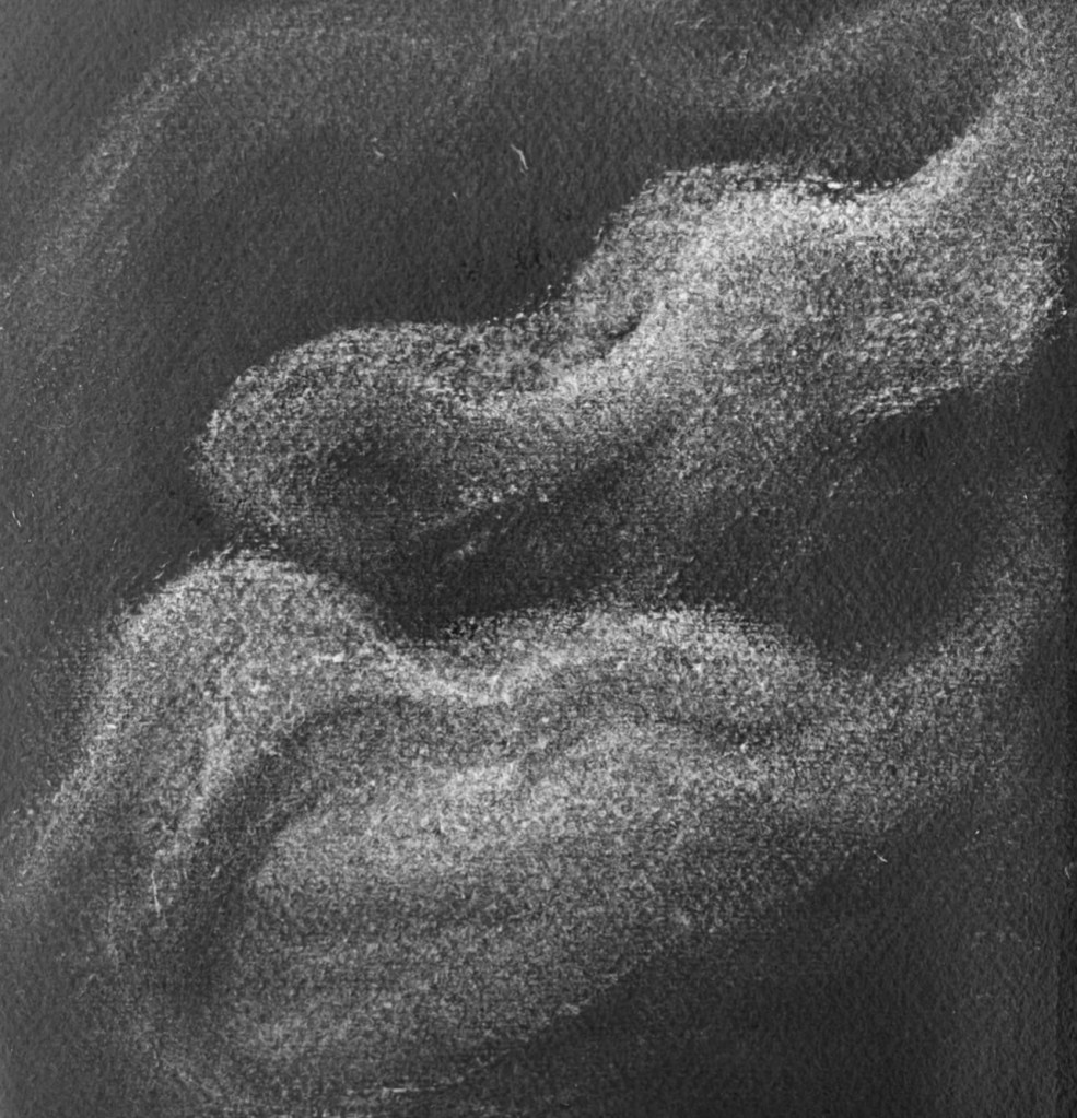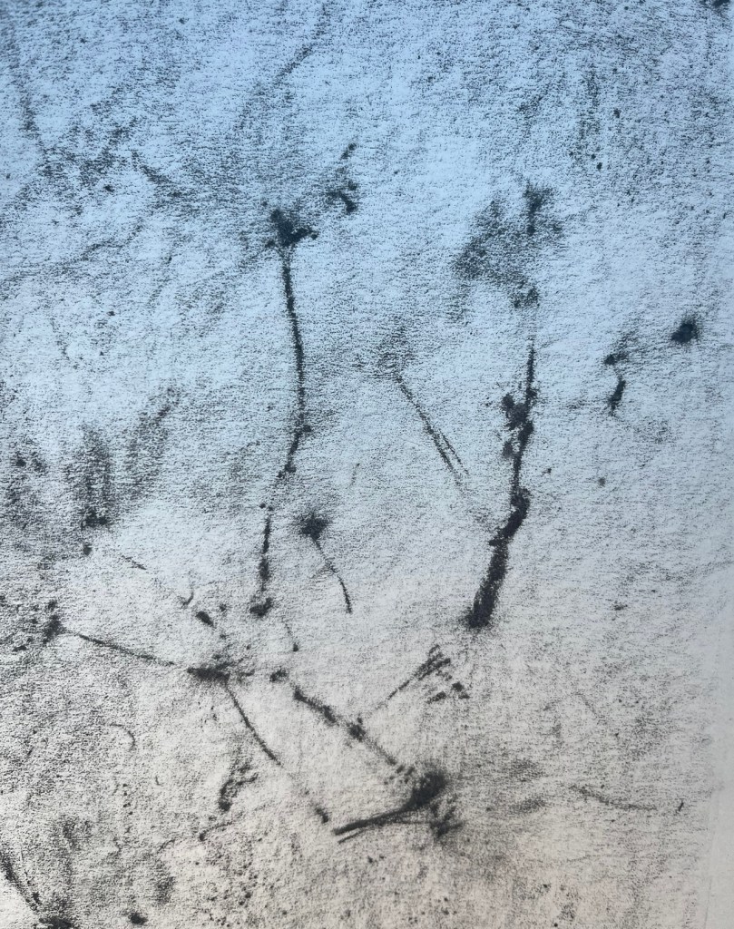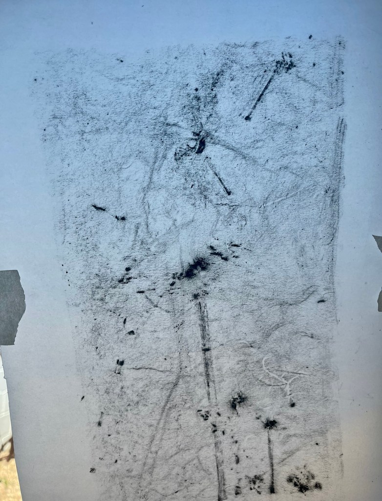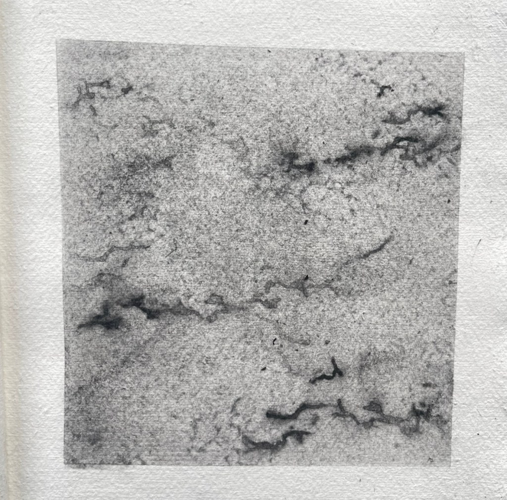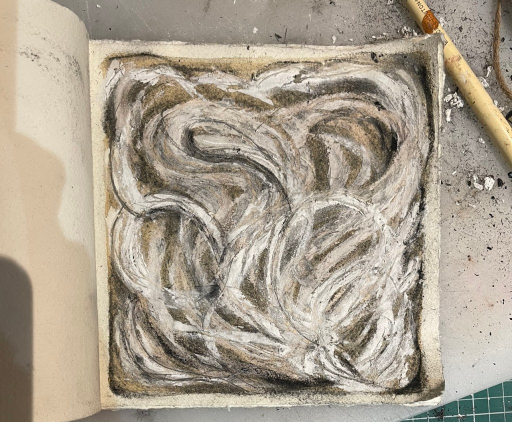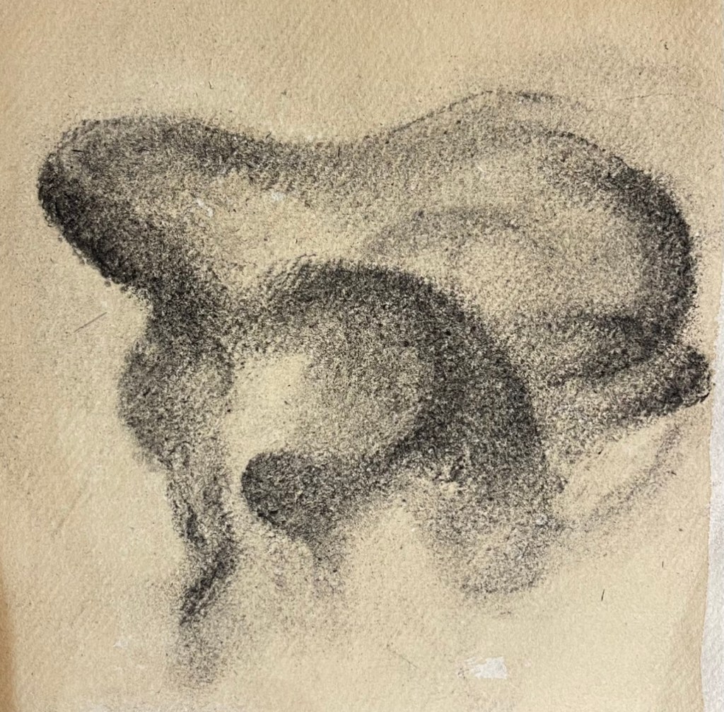 I stained some Khardi pages with tea and began copying the murmuration shapes using charcoal. An ideal medium as it allows so much movement and malleability that are essential to these images in order to appear constantly moving.