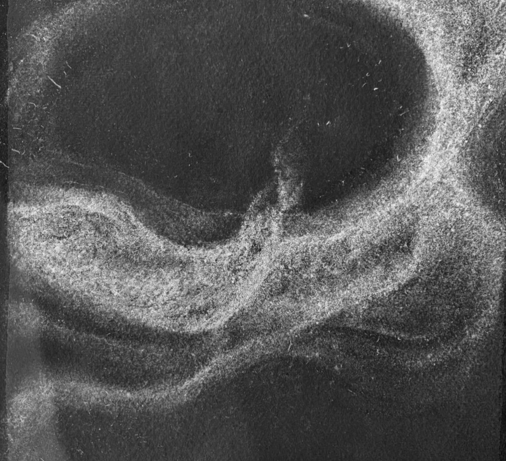 This work concerned murmurations of starlings being a metaphor for the swirling fear and anxiety one can feel when lying n bed at night nt able to sleep with the mind wandering and worrying and the thoughts building to a crescendo of fear and panic as if a swooping dark negative amorphous shape surrounds and overcomes you. The ‘Fear Like Starlings ” title I believe comes from a poem I had read an years ago – unfortunately I have not been able to trace it, despite a deep search. perhaps it was imagined or just a throw away line from a book?