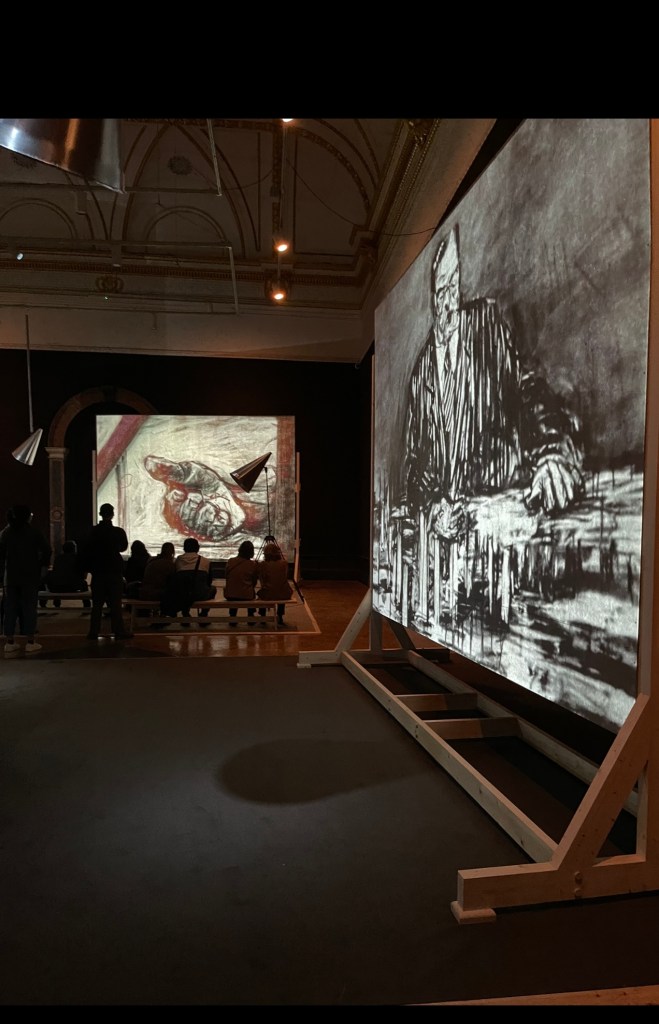 The strong torturous imagery of the film and other pieces by Kentridge convey a message of similar purpose and theme. I was able to view his work at a recent exhibition in London. It was powerful and disturbing in content made more visceral by scale. His film were projected onto enormous screens and Kentridge had applied his black drawing directly onto the gallery walls with a sense of immediacy and passion.