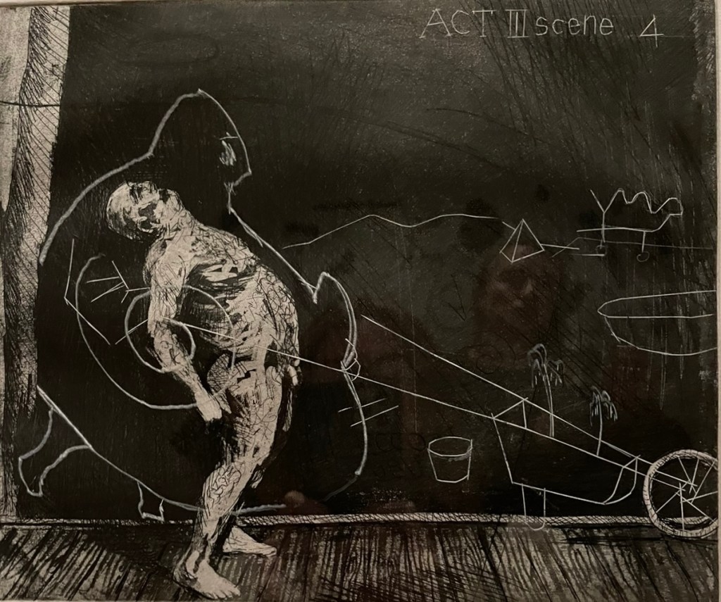 The stark and brutal images allows the imagination fill in the gaps, much like the work of Kentridge, key imagery is used to maximum effect, the writhing swirling mark making fills the pieces with movement as our eyes scan over the canvas, as if watching film. Goya’s dark colours and heavy accents of red, like Kentridge emphasise the brutality of the scene and its impact. Goya also engages us with with the dark, hollow and desperate eyes of the people he depicts pulling the viewer into a visceral level of comprehension and shock.