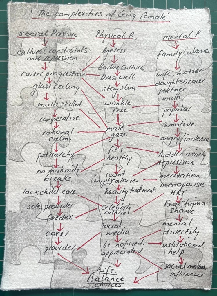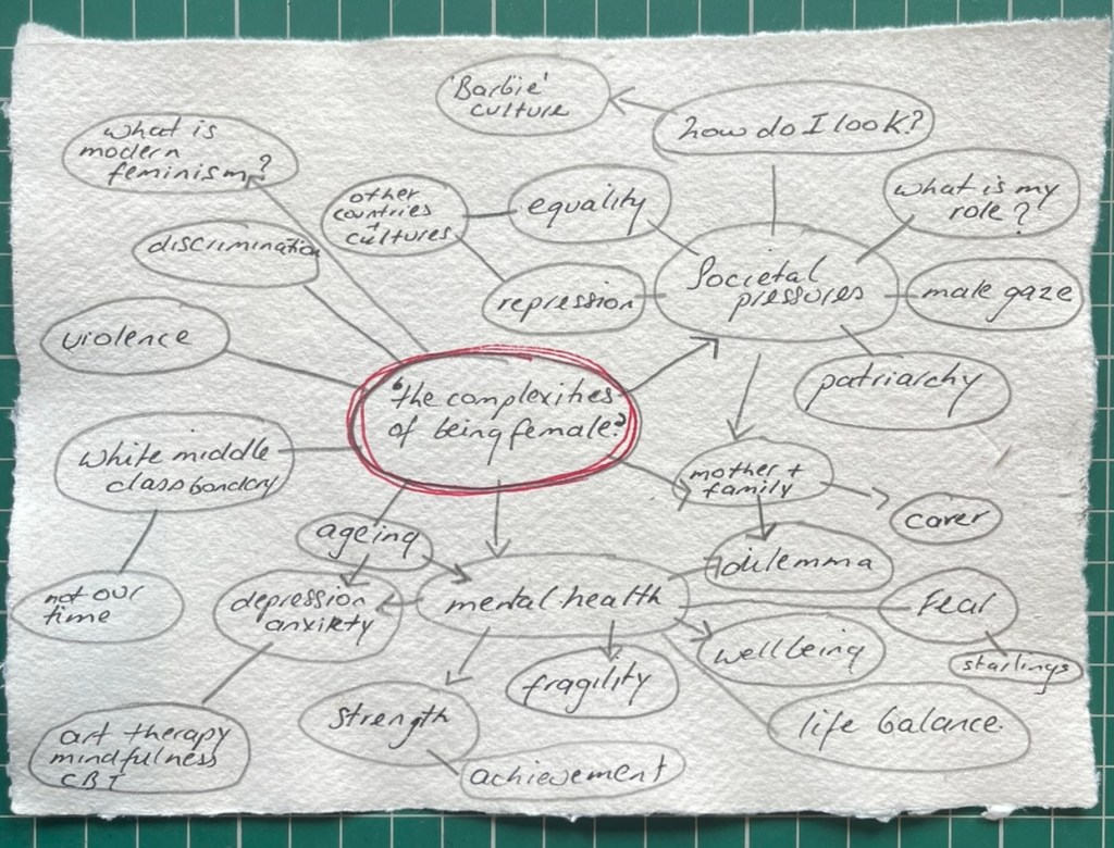 I think this project can tap into general mental health and well being and also to the ‘Complexities of being female”. Night fear is universal ( all sexes) but I would like to focus on the female and the other areas that this can connect to as laid out in previous mind maps.