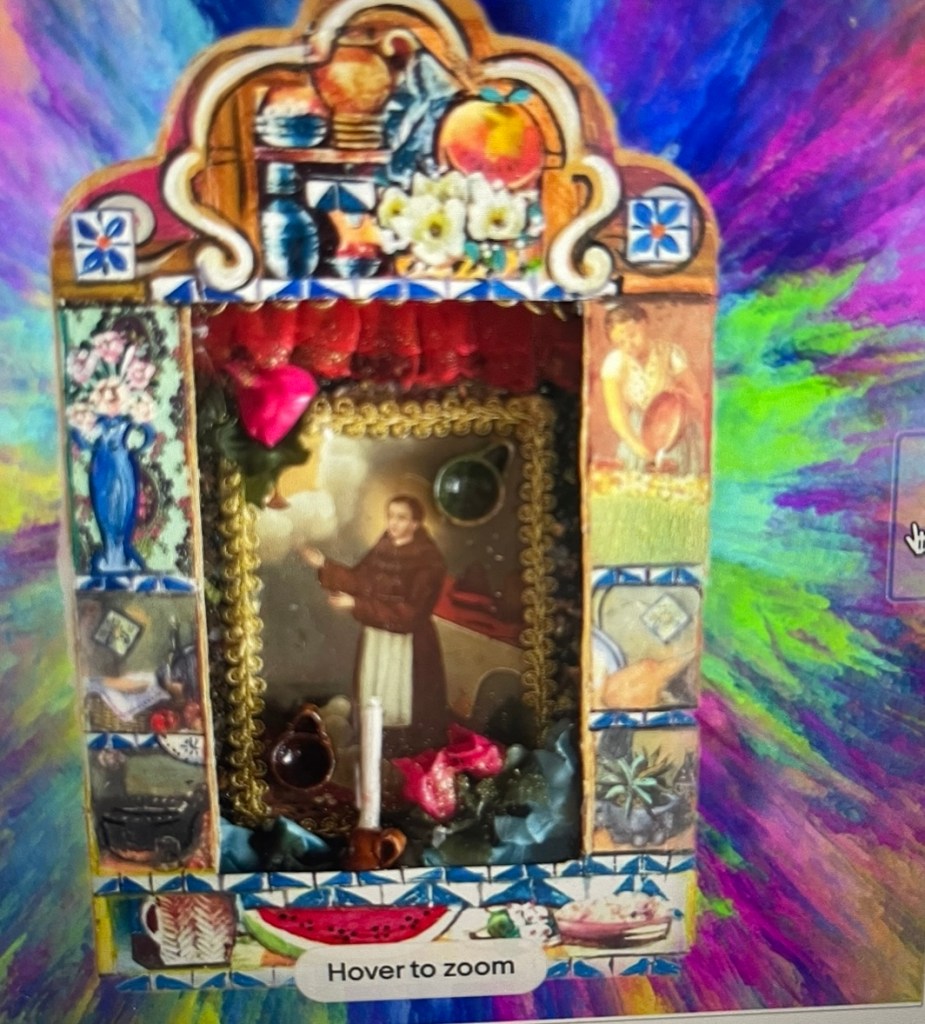Collecting Images of motherhood, secular shrines, moulded dolls hands, gold leaf, icons, Mexican miracle paintings, found objects, patinated copper… ancient qualities…