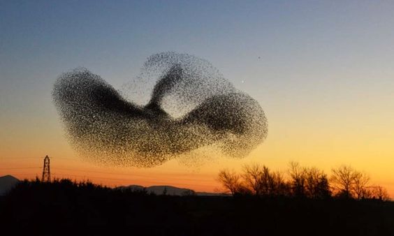 Thousands of Starlings getting ready to roost. There’s a bird of prey above the star and the starlings group together for safety on November 22, 2013 Joan Thirlaway/Guardian Green Shoots