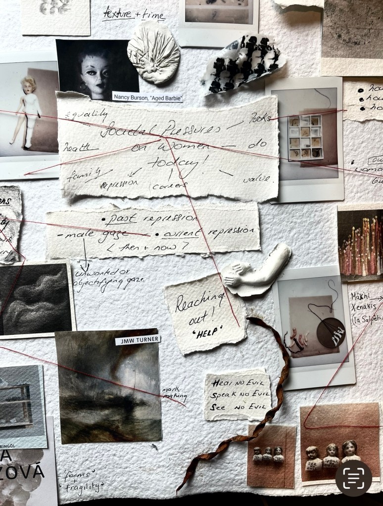 My resource material is varied and wide at this stage as I am loathed to remove any resource prior to a final plan and project development. Much of my research covers my 3 main concerns going forward with a large degree of cross-over: those being, Female mental health, traces of the past and memorabilia and shrines to the female. The majority of artists I have researched are female and have yet to come across a male artist that aligns with any of this subject manner in a positive way.