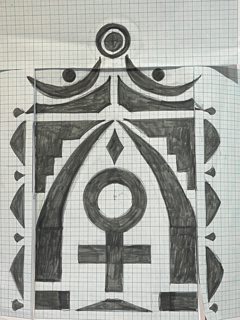 Constructed to show various symbols and markings from a multitude of cultures that mean ‘female ‘ in all its positive definitions and beliefs. These are also potentially on the shine construction also …