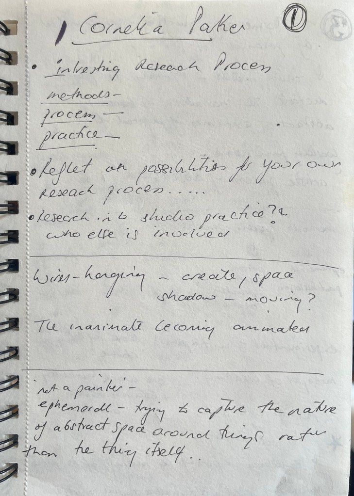 The artist I most identify with is Cornelia Parker. I was thrilled to discover this diverse artist as I felt an immediate connection to her process of working practice, methodology and concerns.