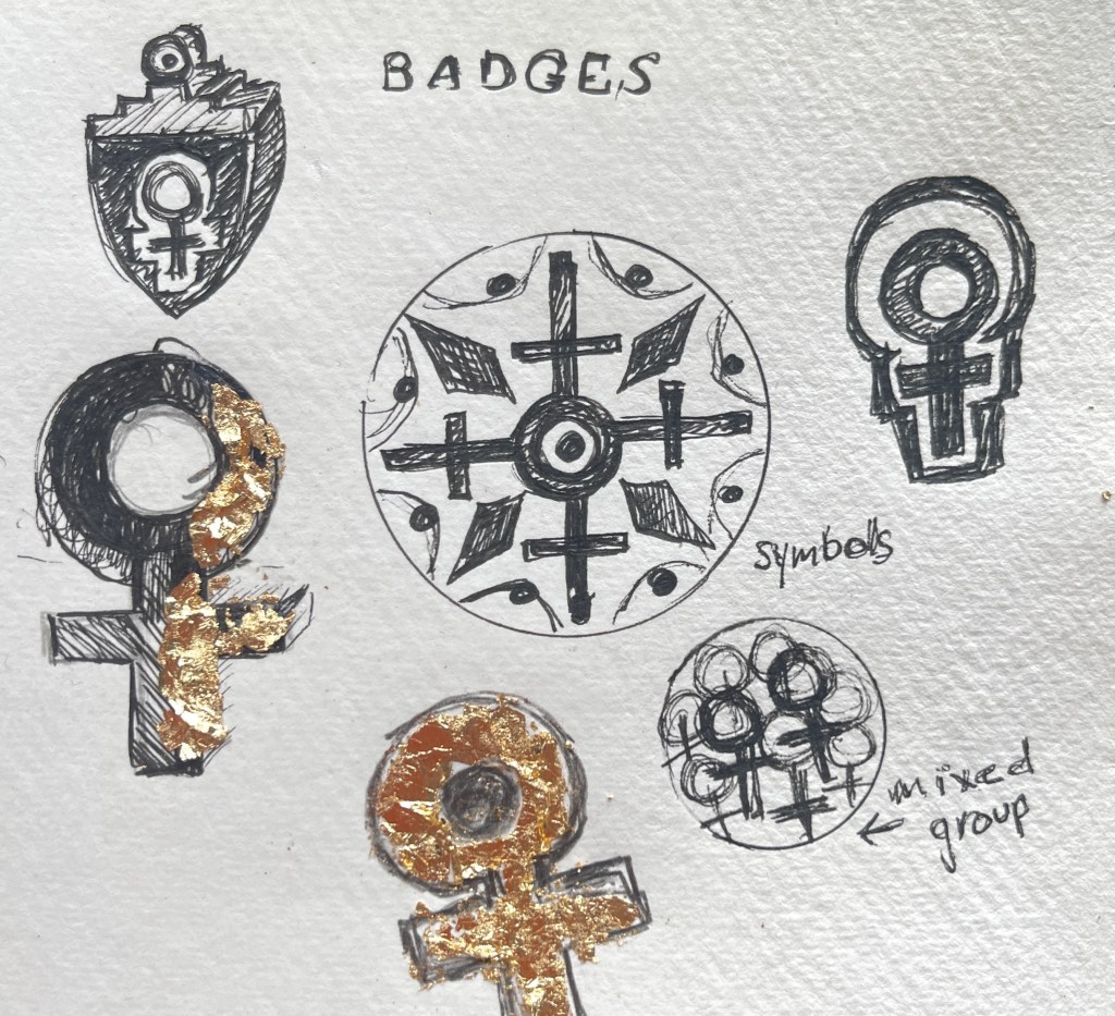 Rough sketch of “A Badge of Honour’ – everyone who visits the ‘Shrine’ takes one away – a memento, memorabilia memory of the visit and a charm, a token to inspire and remind etc…..