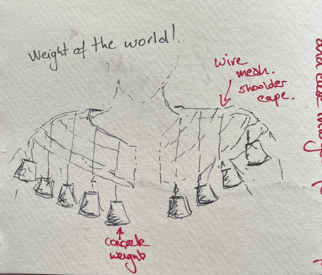 Another experimental concept with an actual weighted body ‘armour’ hanging from shoulders…depicting te downward dragging emotion of depression…