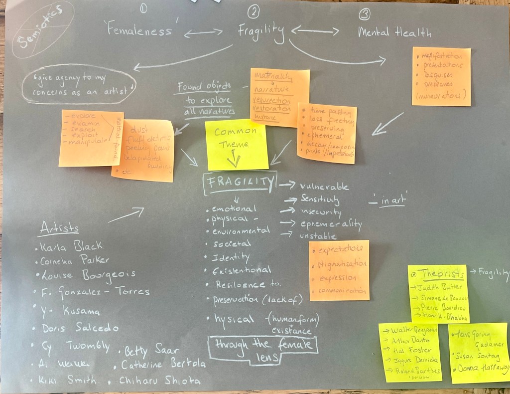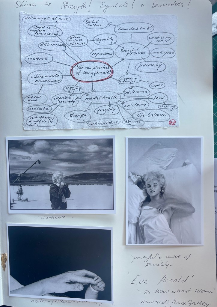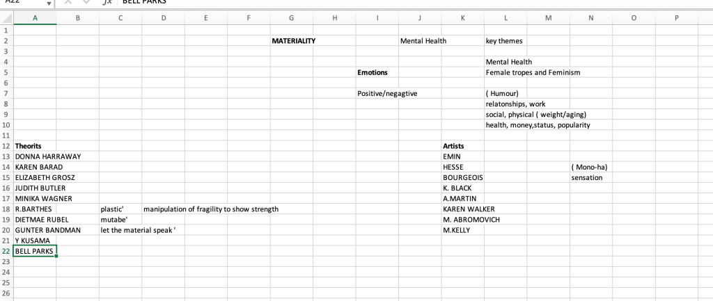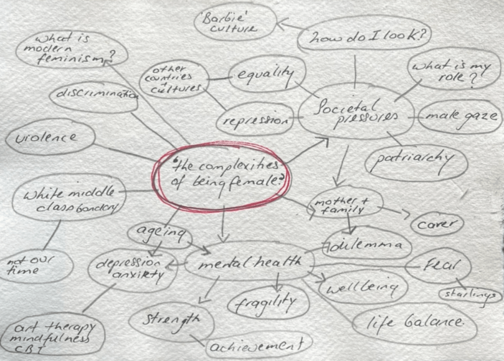 I started again with the 3 areas – Materiality, Mental Health “femaleness’.