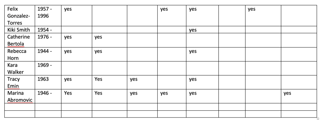 - Their theories overlap to some extent but remain pertinent and relevant to the emotive and visceral practice of key artists I have chosen to research: Louise Bourgeois, Doris Salcedo and Karla Black ( potentially adding Catherine Bertola ).