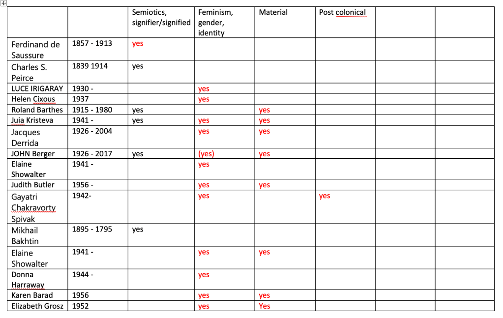 ( N.B Laura Mulvey was not included in final theorist research as more pertinent theorists were uncovered latterly., as was the impact of the ‘material practice’ of female artists. August 2024)