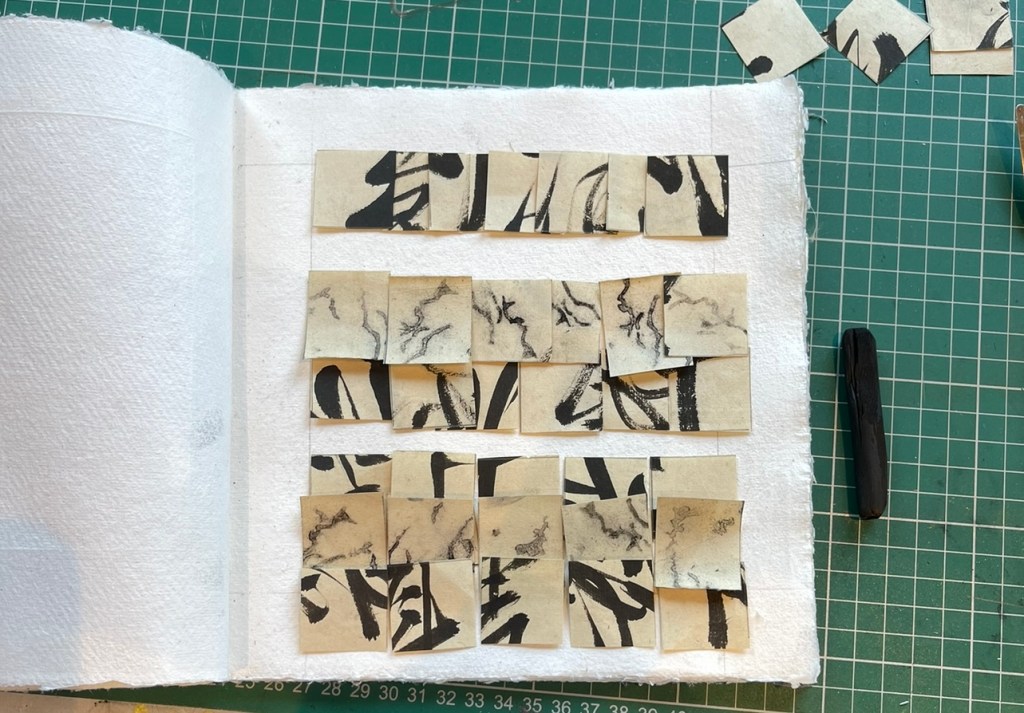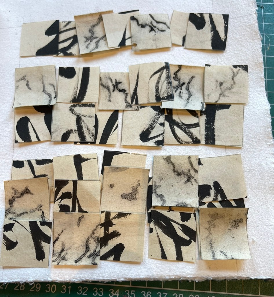 Not wanting to limit the investigation to the stencil only I played with some small-scale work using both the worm stencils and the beautiful inked letters.