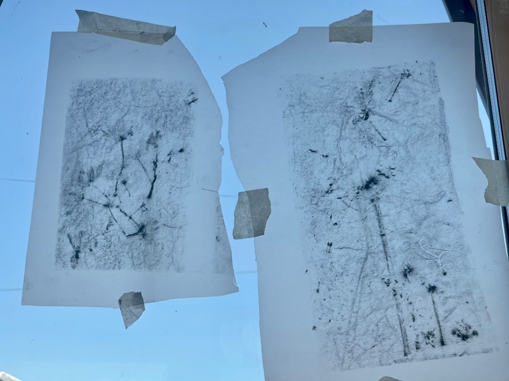 Traces Continued ‘Frailty and Memory’ – Frottage on tracing paper over plant and flower pressing from site of old mental asylum and places of tranquility I have found….