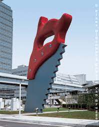 The sculpture Saw, Sawing, 1996, by Claes Oldenburg and Coosje Van Bruggen in Tokyo, at the exhibition complex used as the Olympic press centre in 2021. Photograph: Leon Neal/Getty Images
