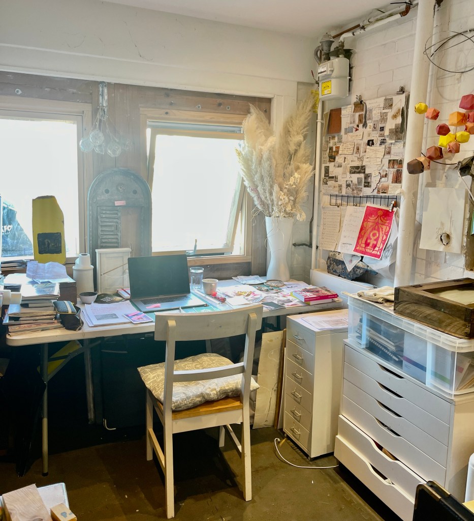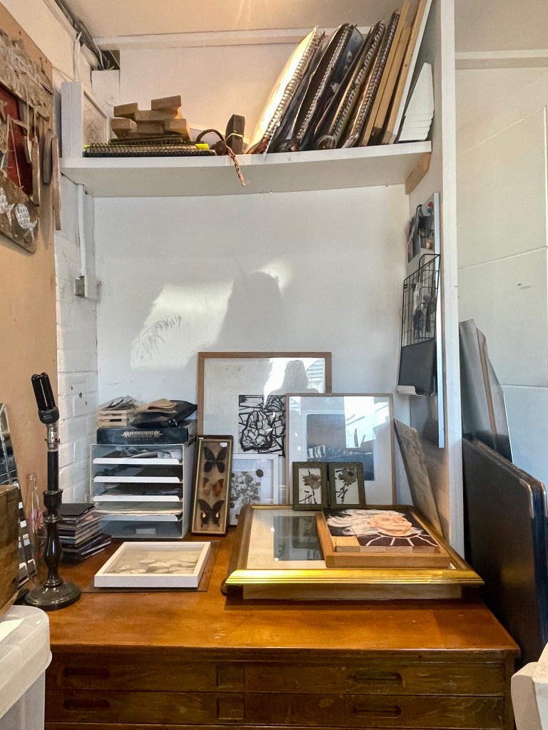 I like to have my studio work and its objects contained within close to hand – plus a sense of privacy and the personal. The synchronicity of objects and materials is more apparent and the opportunity for chance relationship and ideas are more likely to arise.