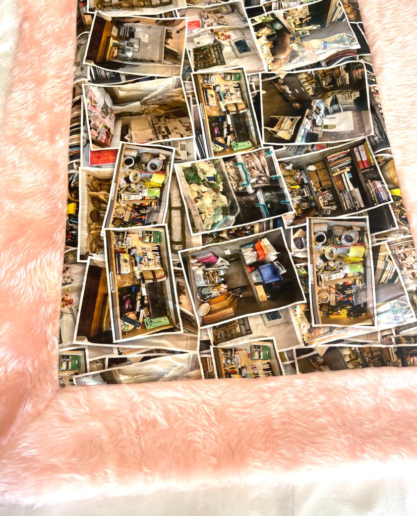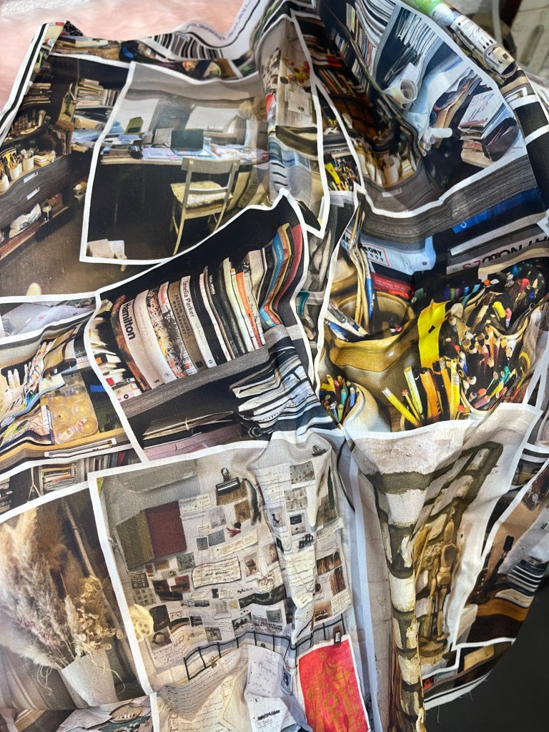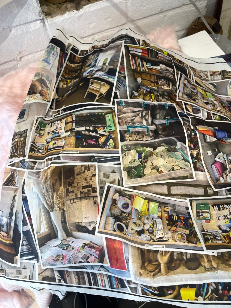 The one that seemed to most suit the visual representation of my work environment as it related to me was to include visual imagery of the studio in a ‘blanket’ TYPE format. Something that wrapped around me, comforting and tactile.
